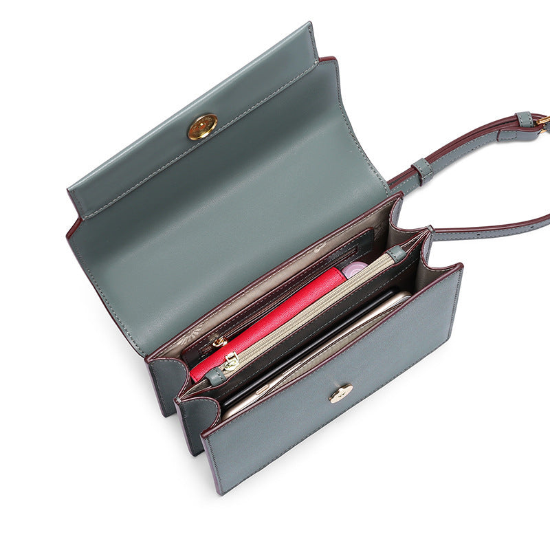 Women’s Leather Shoulder Bag – Small Square Messenger Bag with Two-Layer Cowhide